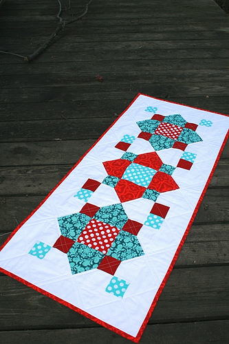 The table runner is DIY-worthy in every sense for its perfect appliqué-styled beauty and brightness.